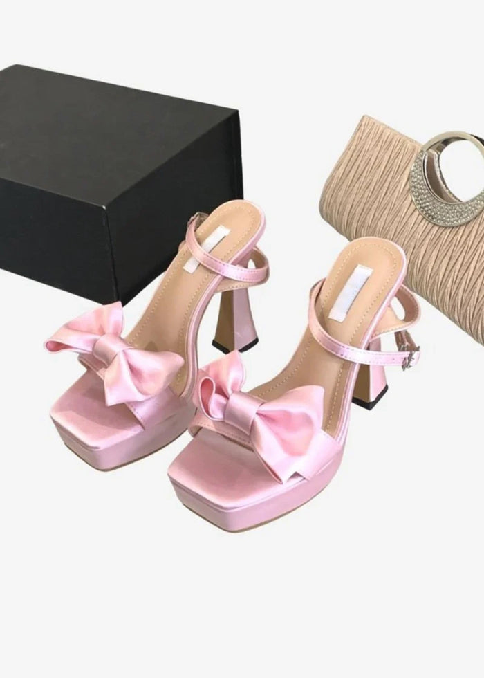 Elevate your footwear collection with these stunning pink heel sandals. Crafted as chic chunky heel sandals, they blend fashion and comfort seamlessly. The soft pink hue exudes femininity, while the eye-catching satin bow detail on the front adds a romantic touch—perfect for those who adore pink high heels with bow designs. Made from glossy satin, these satin heels not only look luxurious but also offer a smooth, elegant finish. The platform sole and sturdy chunky heel ensure stability, making them ideal for weddings, parties, or evening events where you want to stand out.